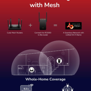 Equipped with Wi-Fi 6, RE3000 boasts the highest 160 MHz bandwidth and 1024-QAM to reach up to 3 Gbps speeds, which is more than 2.5X faster than the last-gen AC 2×2 RE. This high throughput allows massive amount data including your 4K video streaming hopping to end-devices without throttleing.