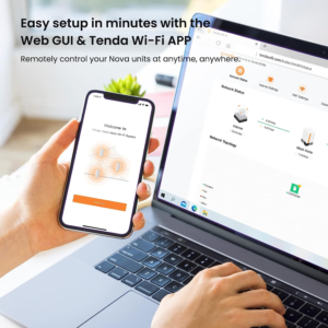 - 𝐄𝐚𝐬𝐲 𝐒𝐞𝐭𝐮𝐩 𝐢𝐧 𝐌𝐢𝐧𝐮𝐭𝐞𝐬 — The Web GUl or Tenda Wi-Fi APP helps you set up, monitor,& manage your home Wi-Fi mesh network easily & quickly. A new node can be added to existing Tenda Nova networks with the push of the Mesh button
